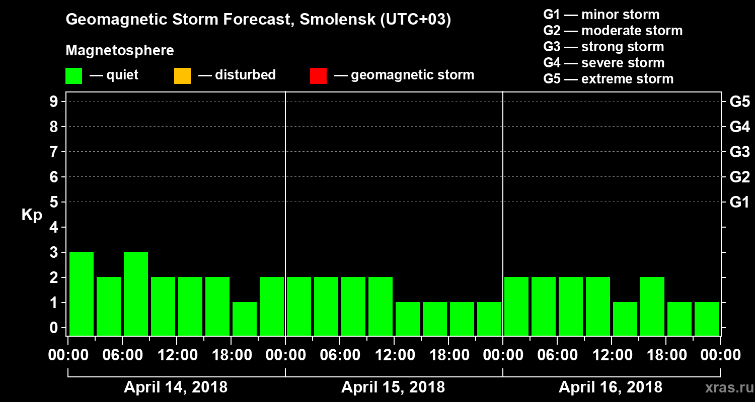 Geomagnetic storm forecast in Smolensk for Apr 14, 2018