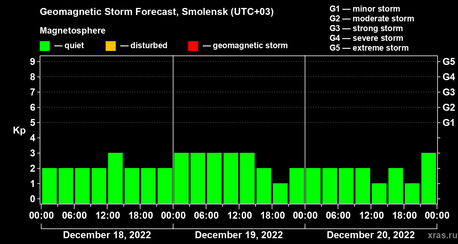 Geomagnetic storm forecast in Smolensk for Dec 18, 2022