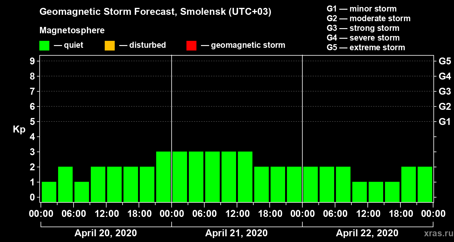 Geomagnetic storm forecast in Smolensk for Apr 20, 2020