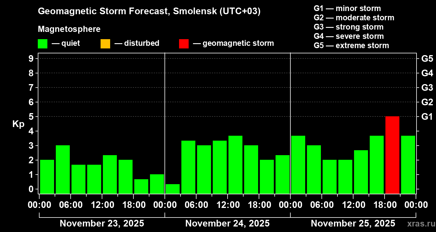 Geomagnetic storm forecast in Smolensk for Nov 23, 2025