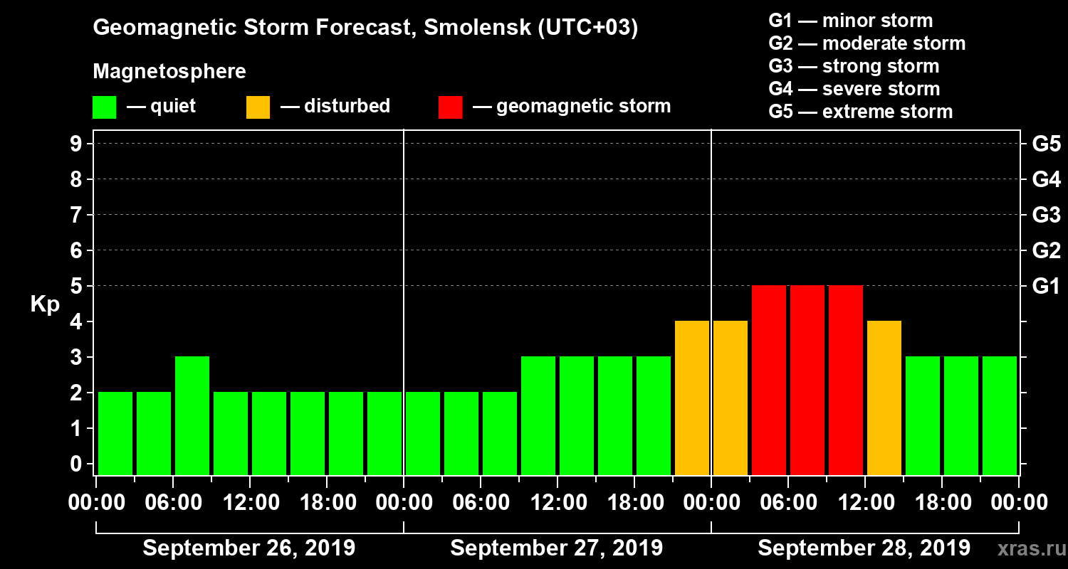 Geomagnetic storm forecast in Smolensk for Sep 26, 2019