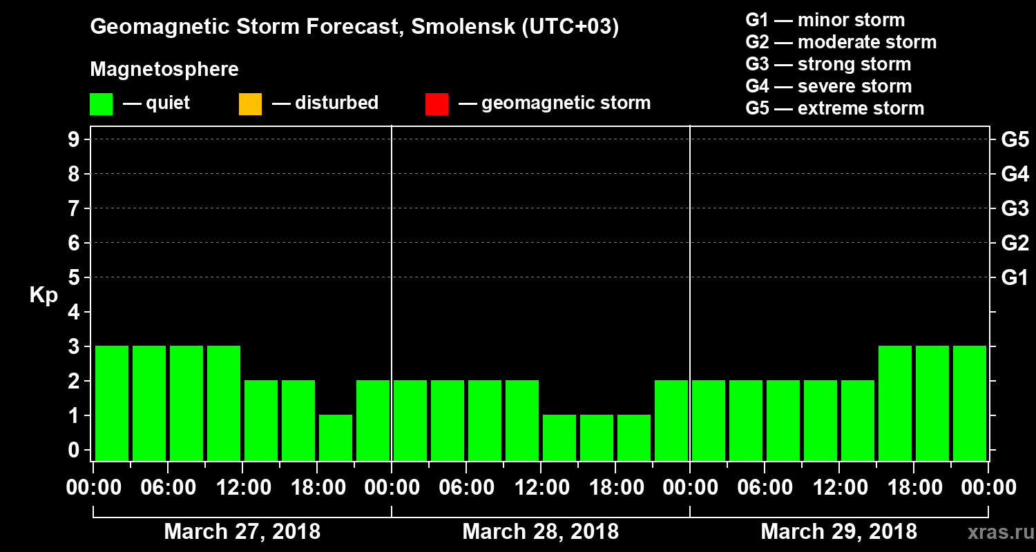 Geomagnetic storm forecast in Smolensk for Mar 27, 2018