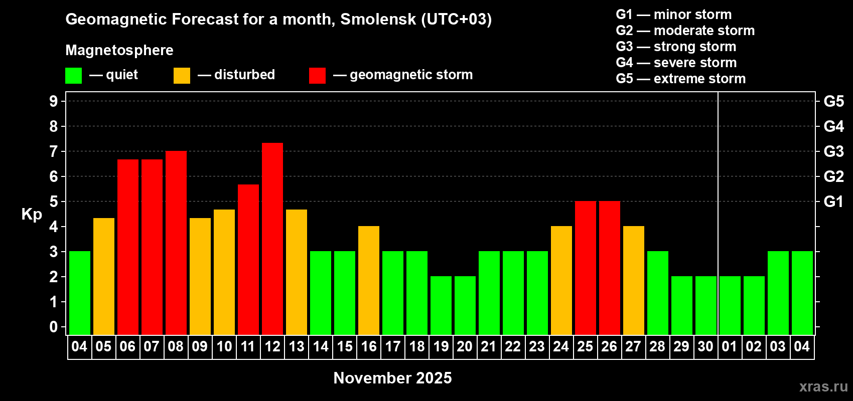 Geomagnetic storm forecast in Smolensk for Nov 04, 2025