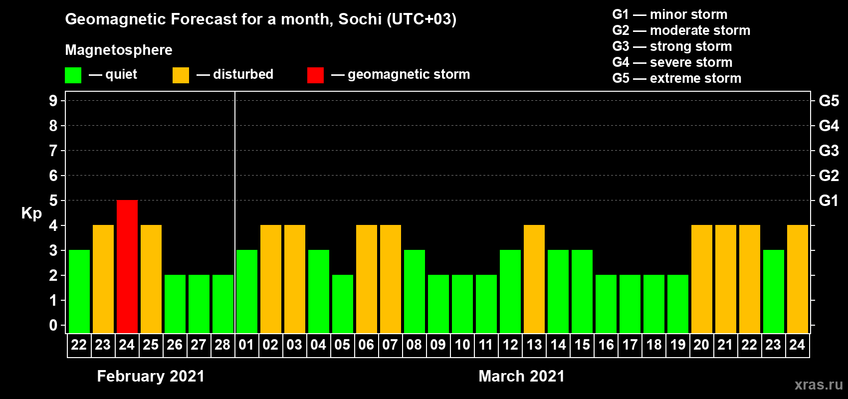 Geomagnetic storm forecast in Sochi for Feb 22, 2021