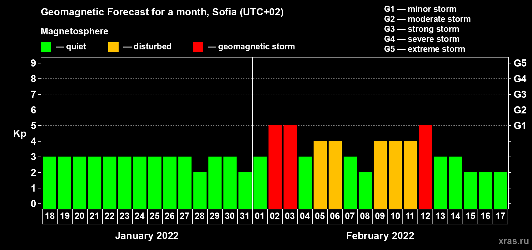 Geomagnetic storm forecast in Sofia for Jan 18, 2022