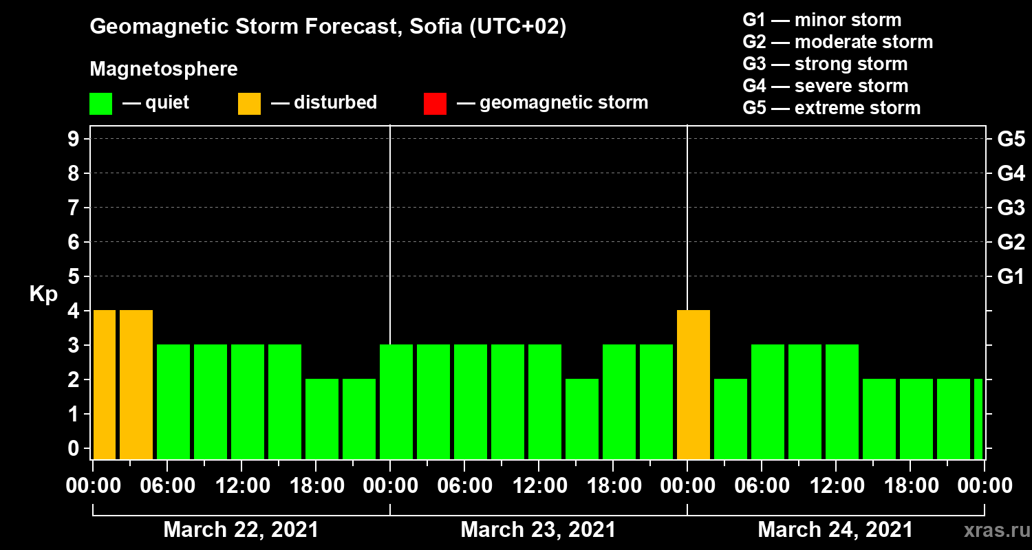 Geomagnetic activity forecast in Sofia — Mar 22, 2021