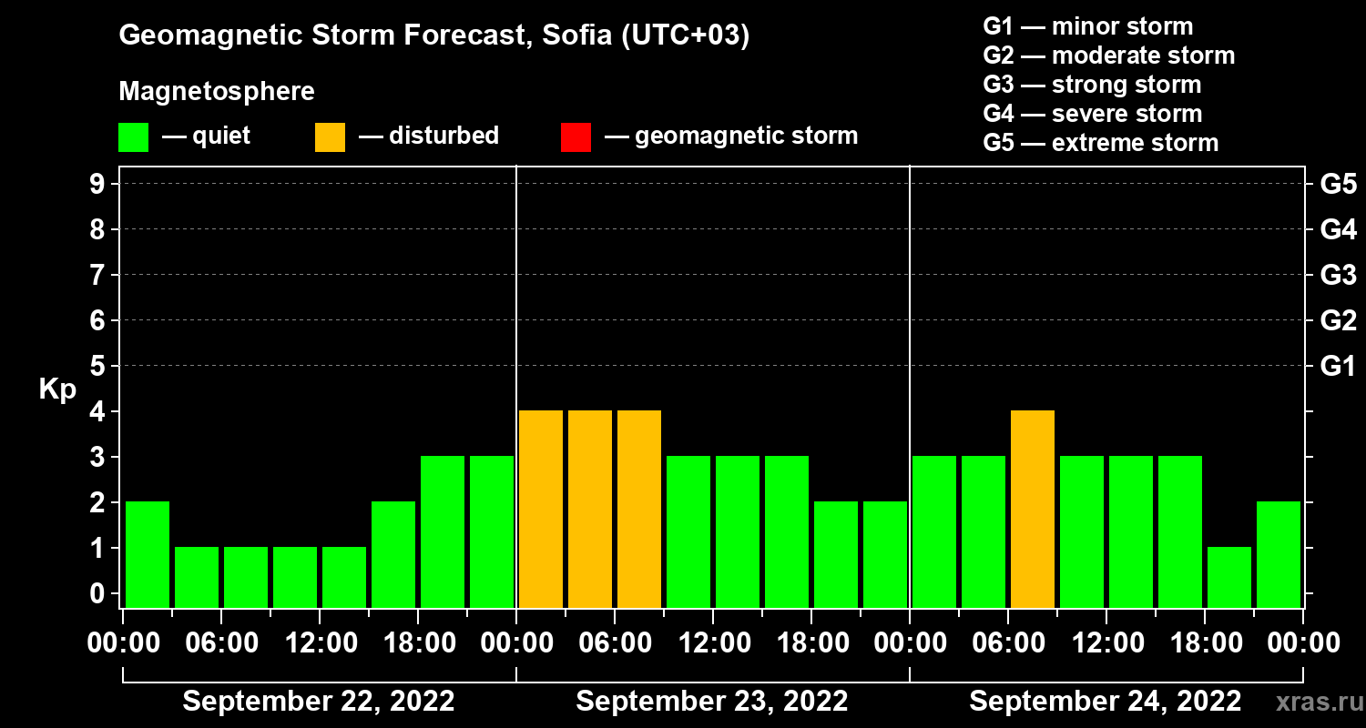 Geomagnetic activity forecast in Sofia — Sep 22, 2022