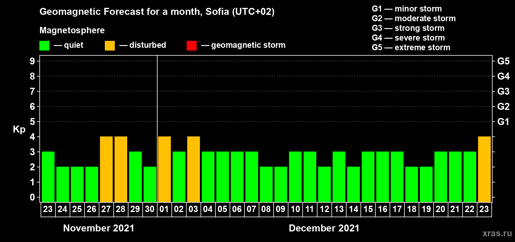 Geomagnetic activity forecast in Sofia — Nov 23, 2021