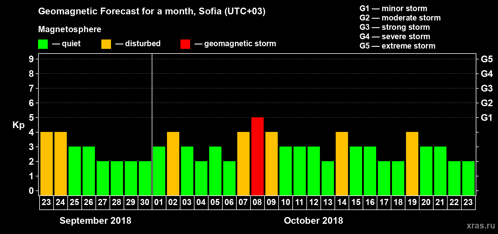 Geomagnetic activity forecast in Sofia — Sep 23, 2018