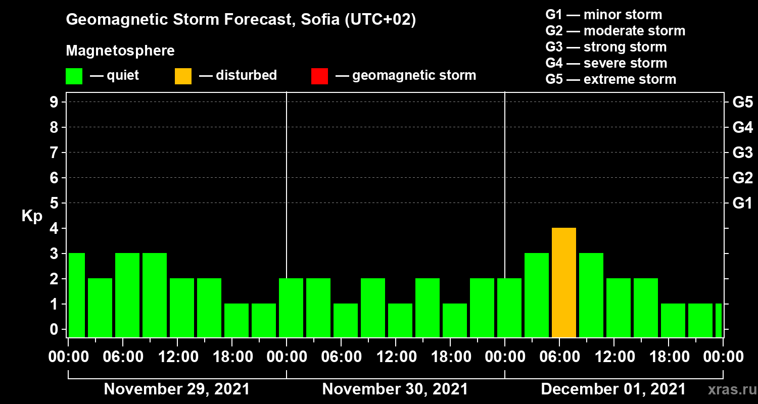 Geomagnetic activity forecast in Sofia — Nov 29, 2021