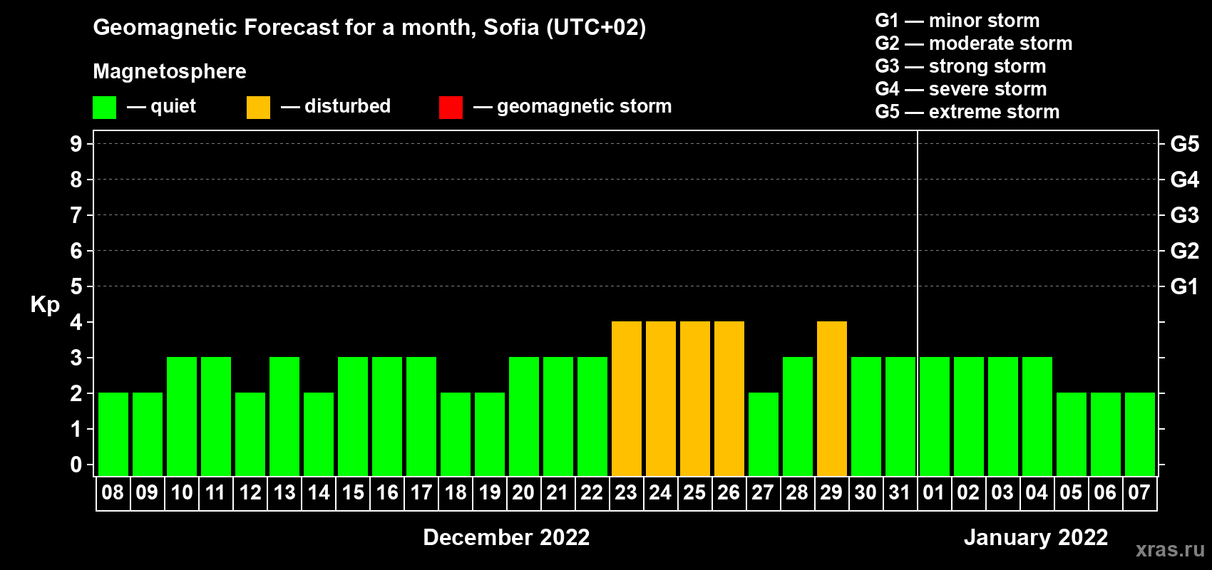 Geomagnetic storm forecast in Sofia for Dec 08, 2021