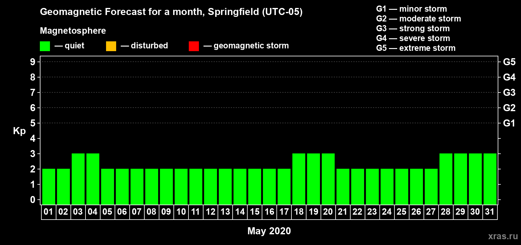 Geomagnetic storm forecast in Springfield for May 01, 2020