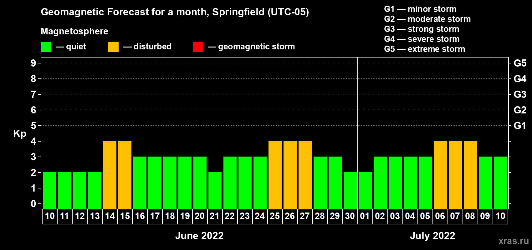 Geomagnetic storm forecast in Springfield for Jun 10, 2022