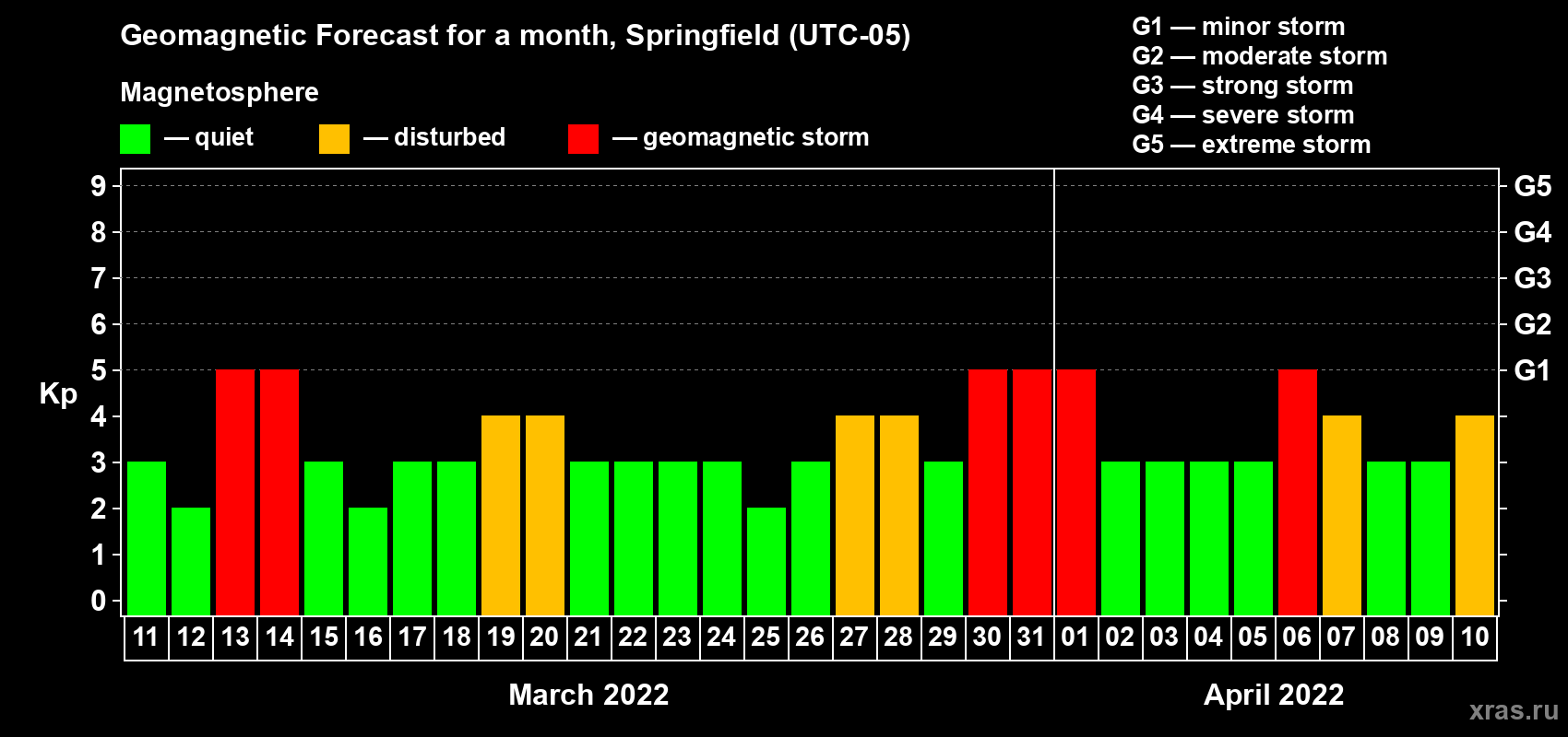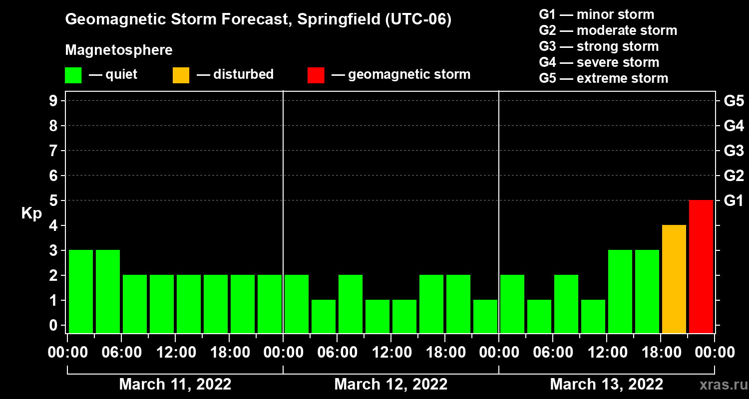 Geomagnetic storm forecast in Springfield for Mar 11, 2022