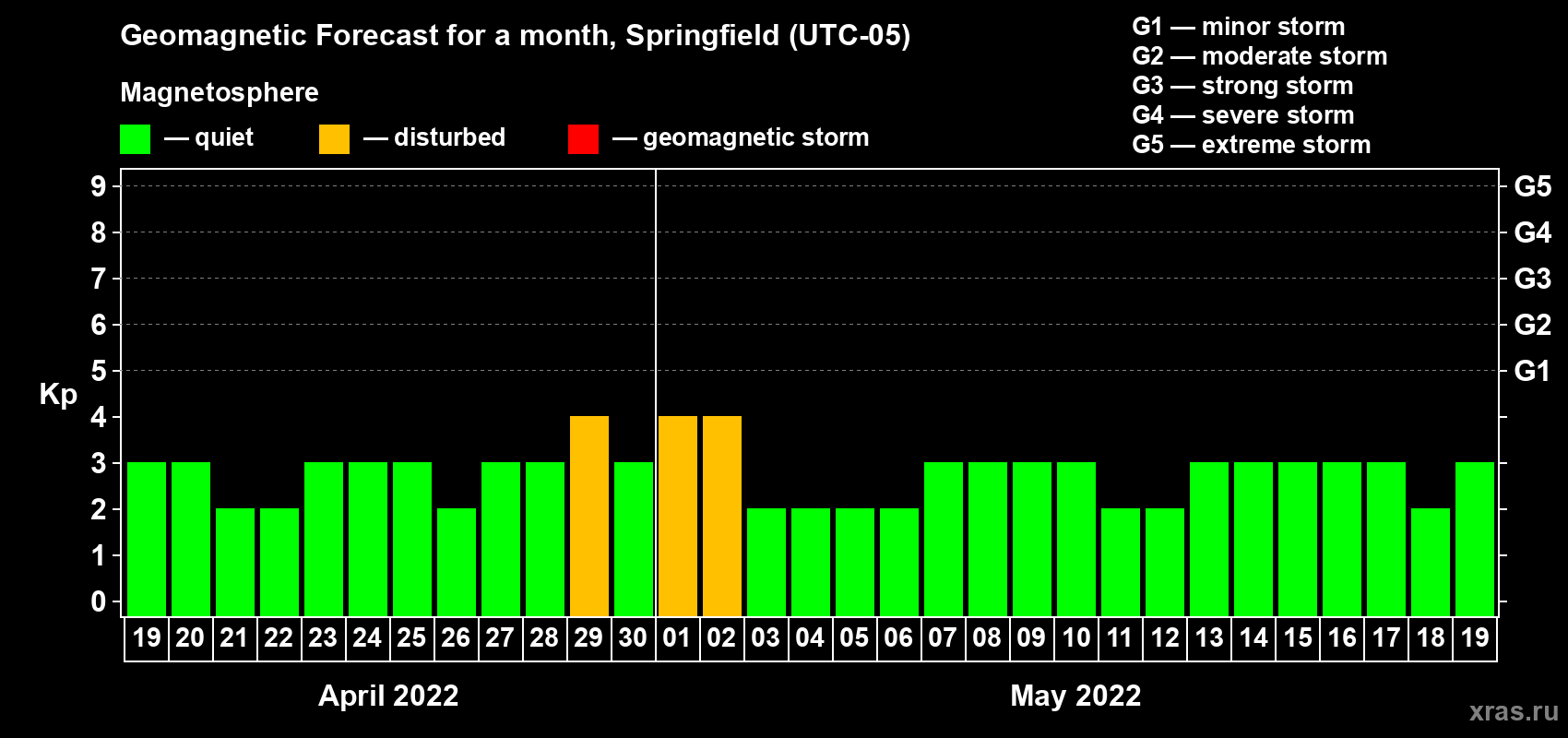 Geomagnetic storm forecast in Springfield for Apr 19, 2022