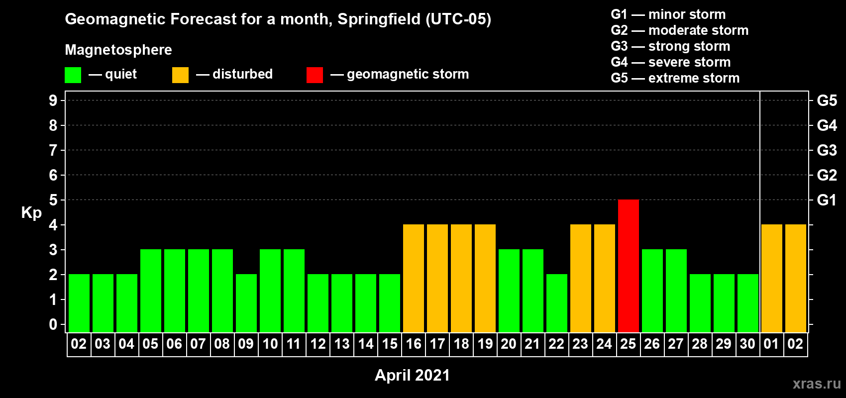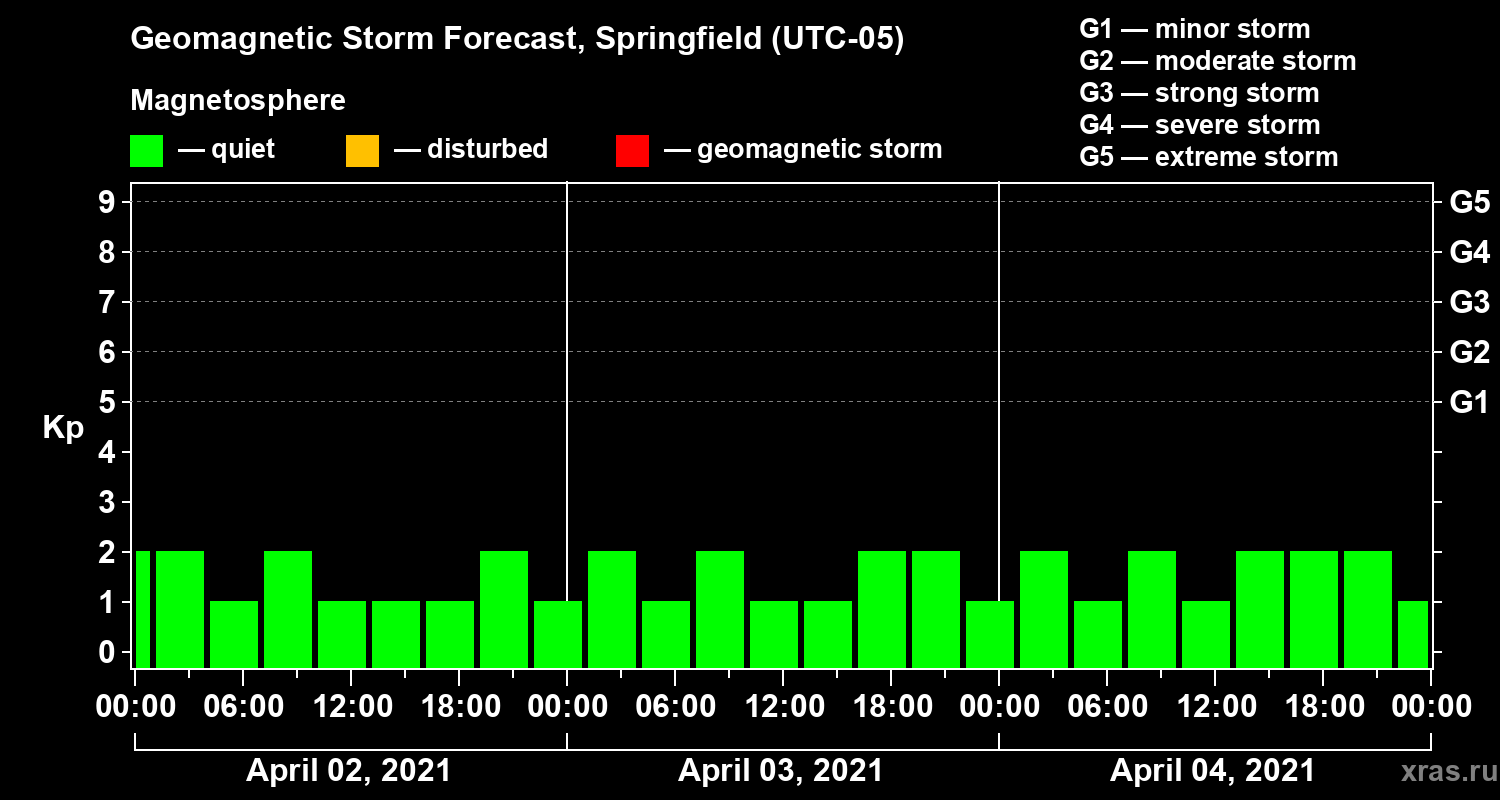 Geomagnetic storm forecast in Springfield for Apr 02, 2021