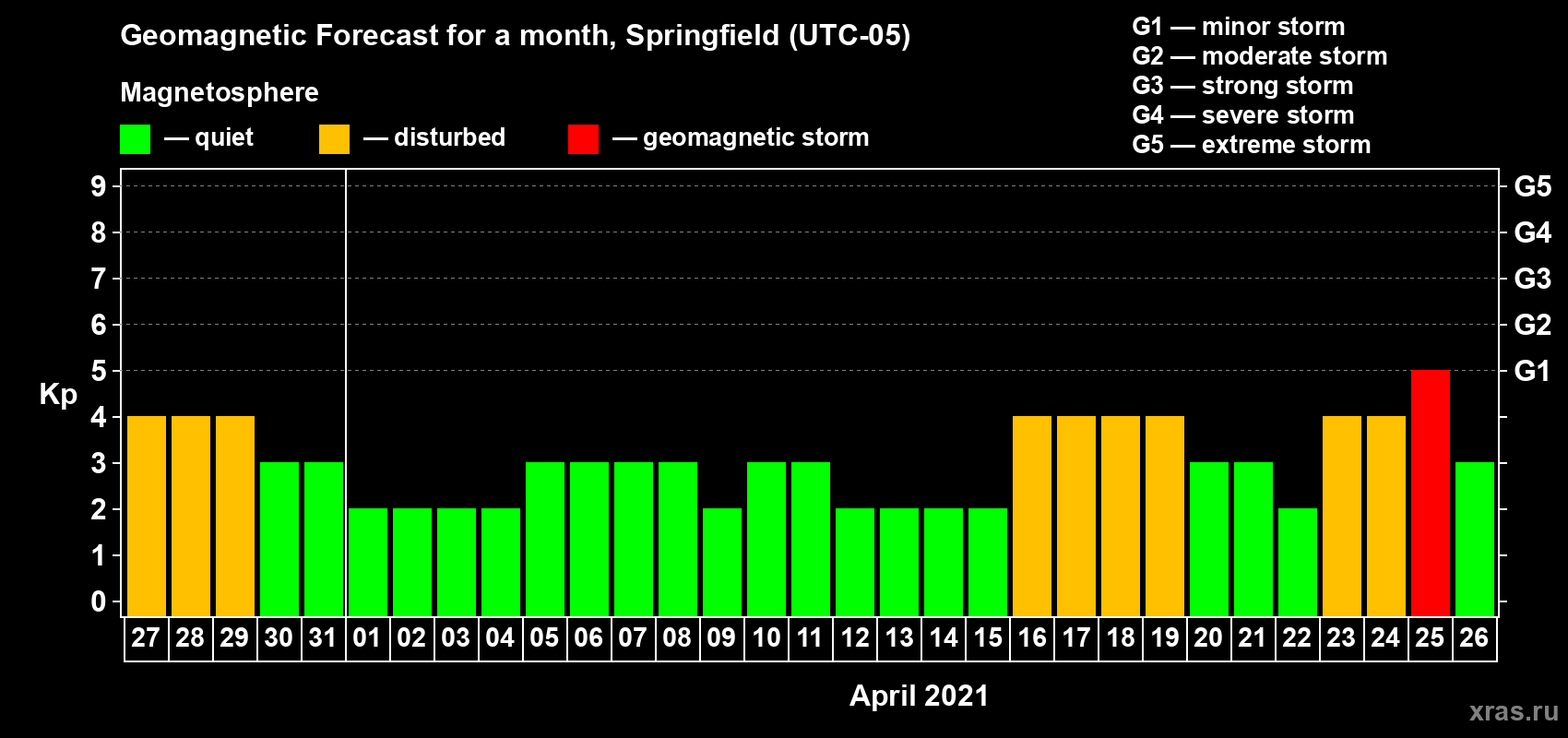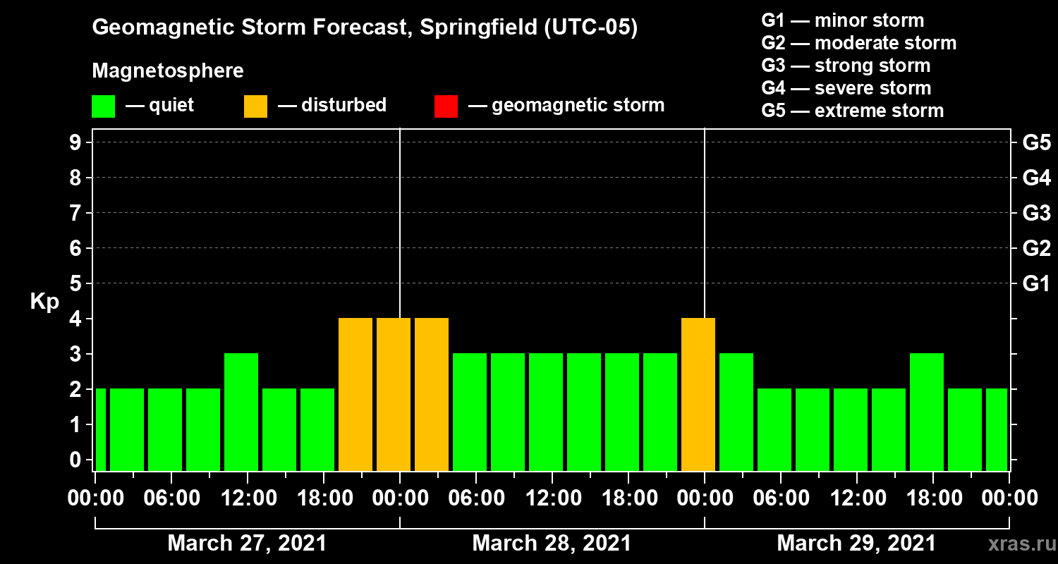 Geomagnetic storm forecast in Springfield for Mar 27, 2021