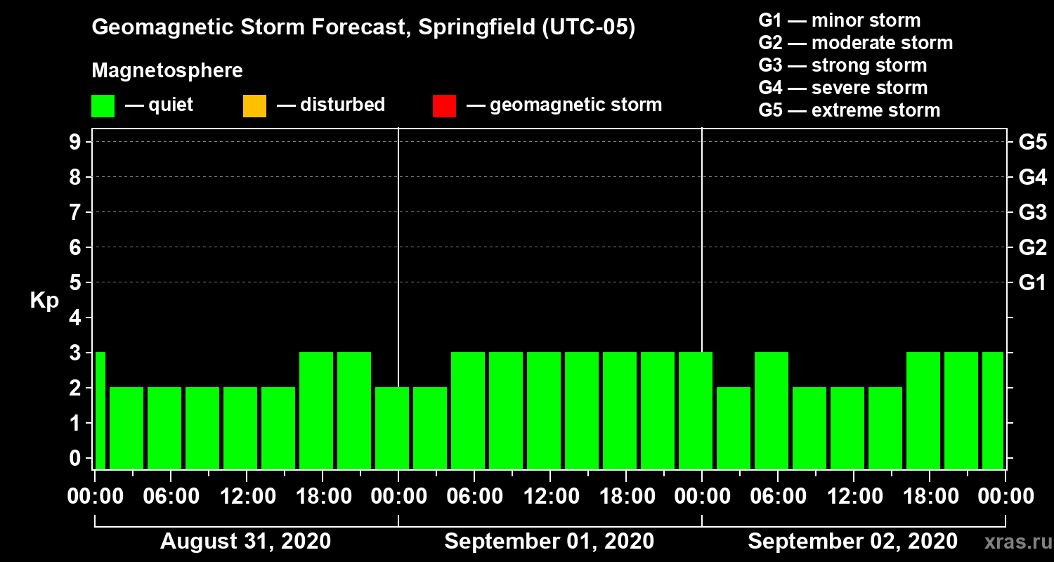 Geomagnetic storm forecast in Springfield for Aug 31, 2020