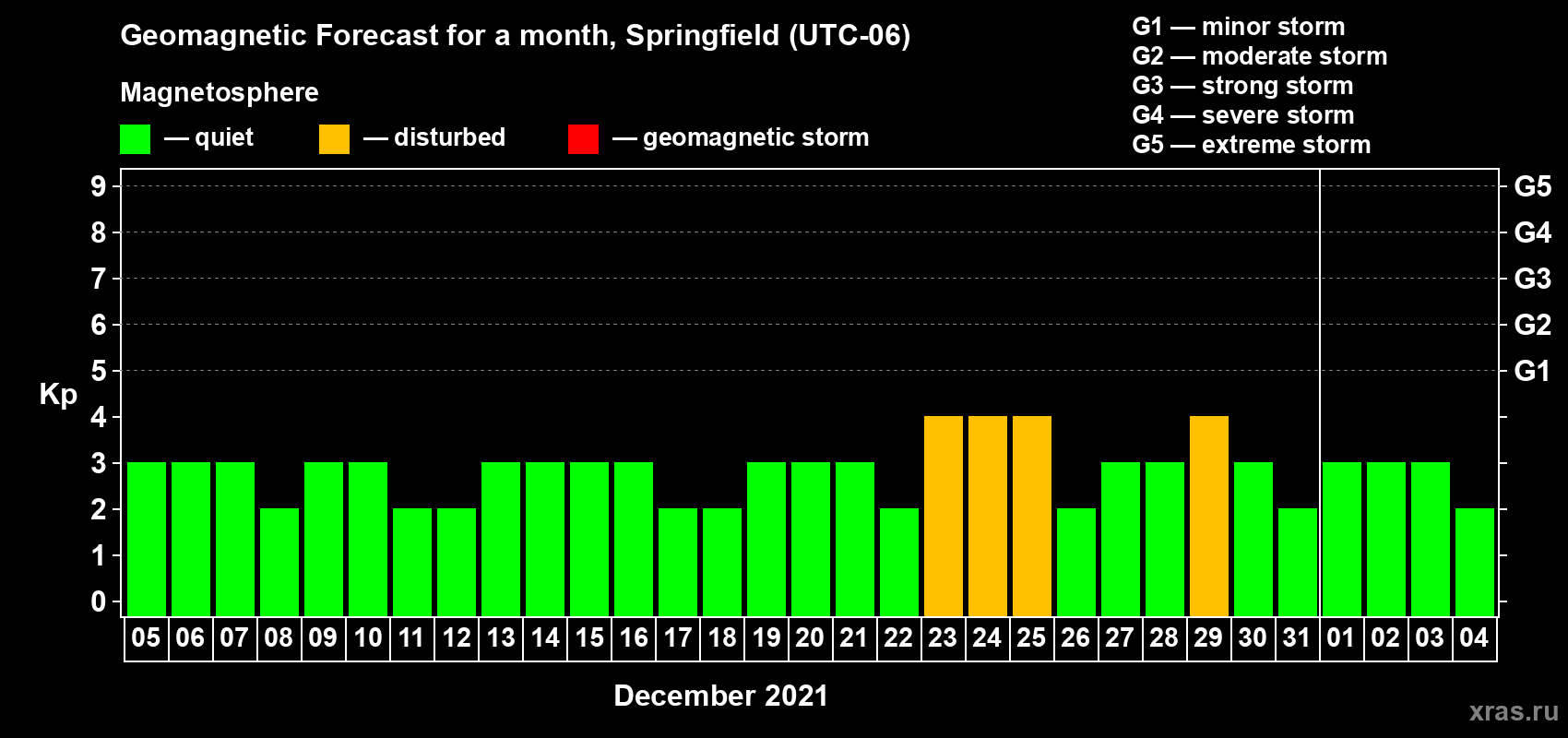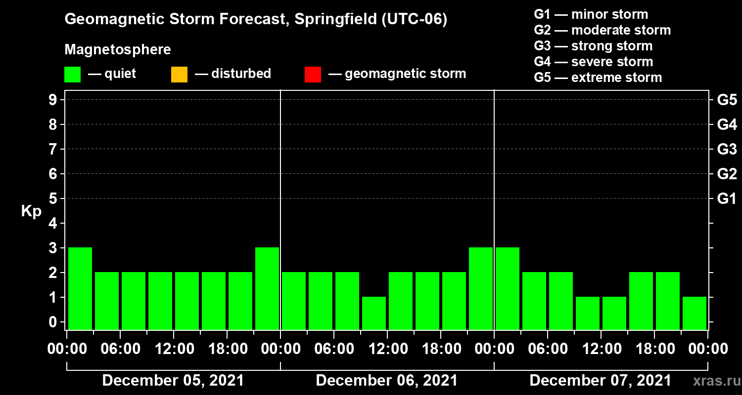 Geomagnetic storm forecast in Springfield for Dec 05, 2021