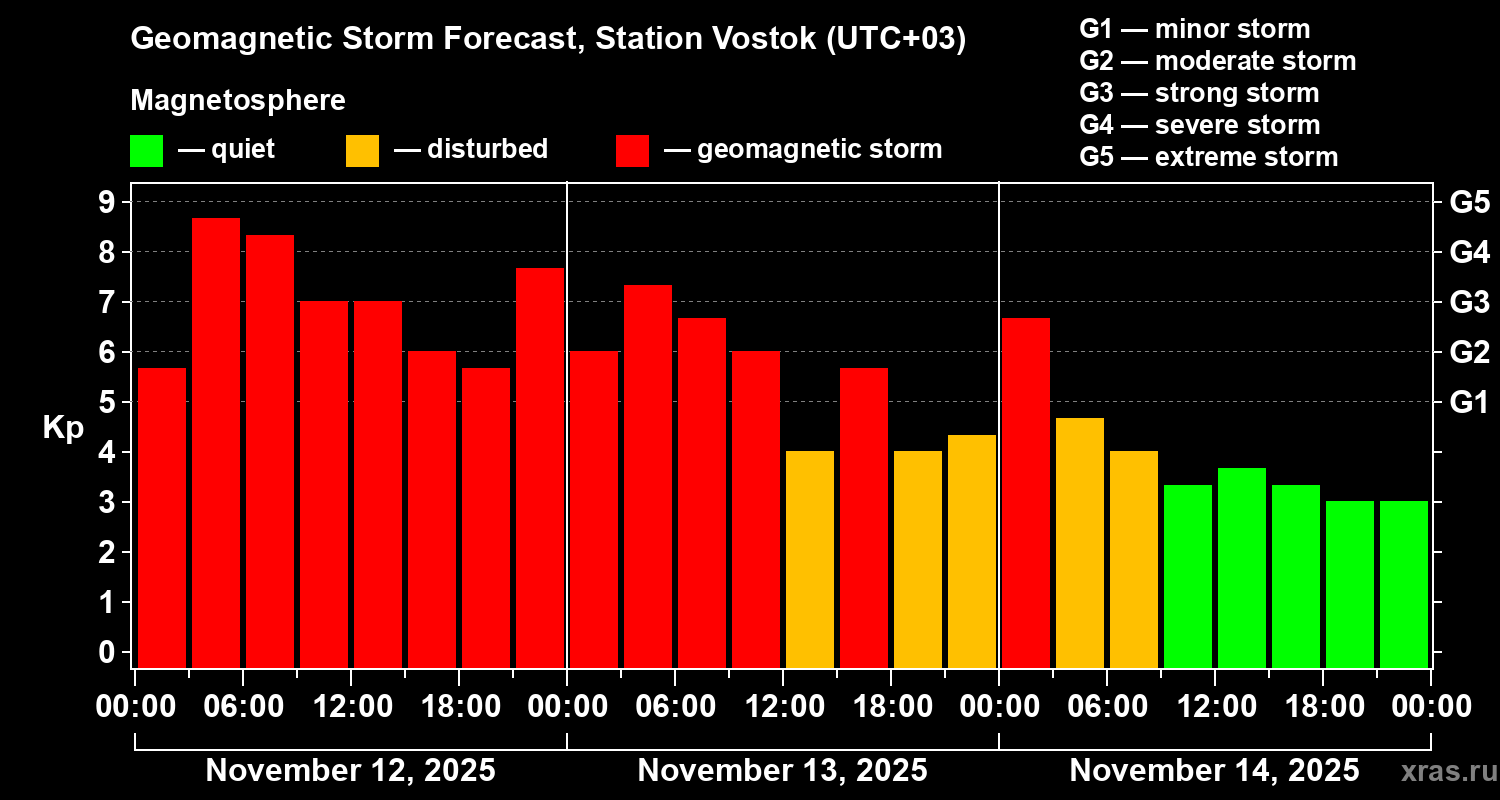 Geomagnetic storm forecast in Station Vostok for Nov 12, 2025