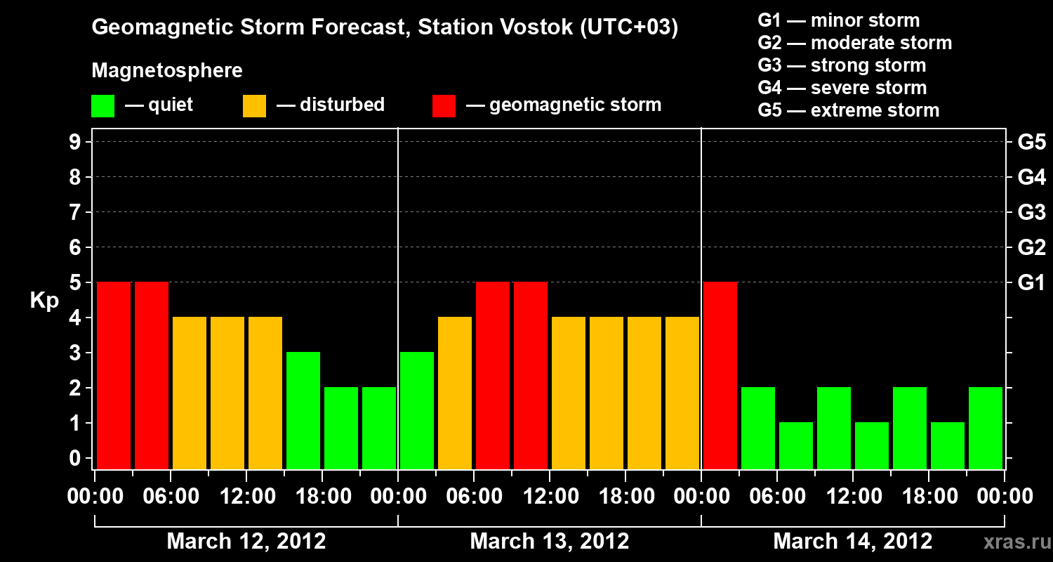 Geomagnetic storm forecast in Station Vostok for Mar 12, 2012
