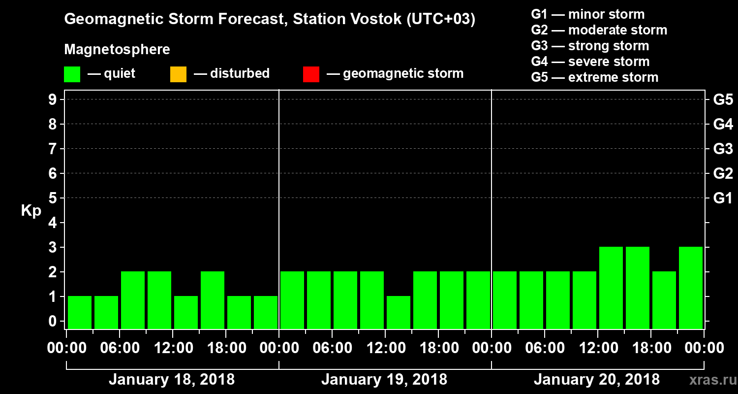 Geomagnetic storm forecast in Station Vostok for Jan 18, 2018
