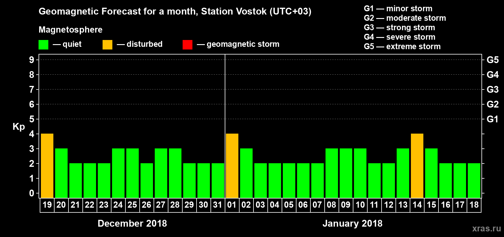 Geomagnetic activity forecast in Station Vostok — Dec 19, 2017