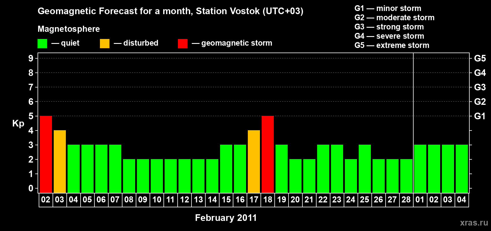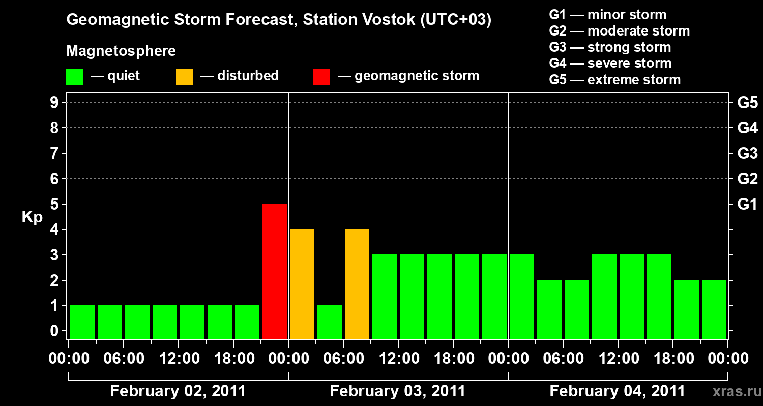 Geomagnetic storm forecast in Station Vostok for Feb 02, 2011