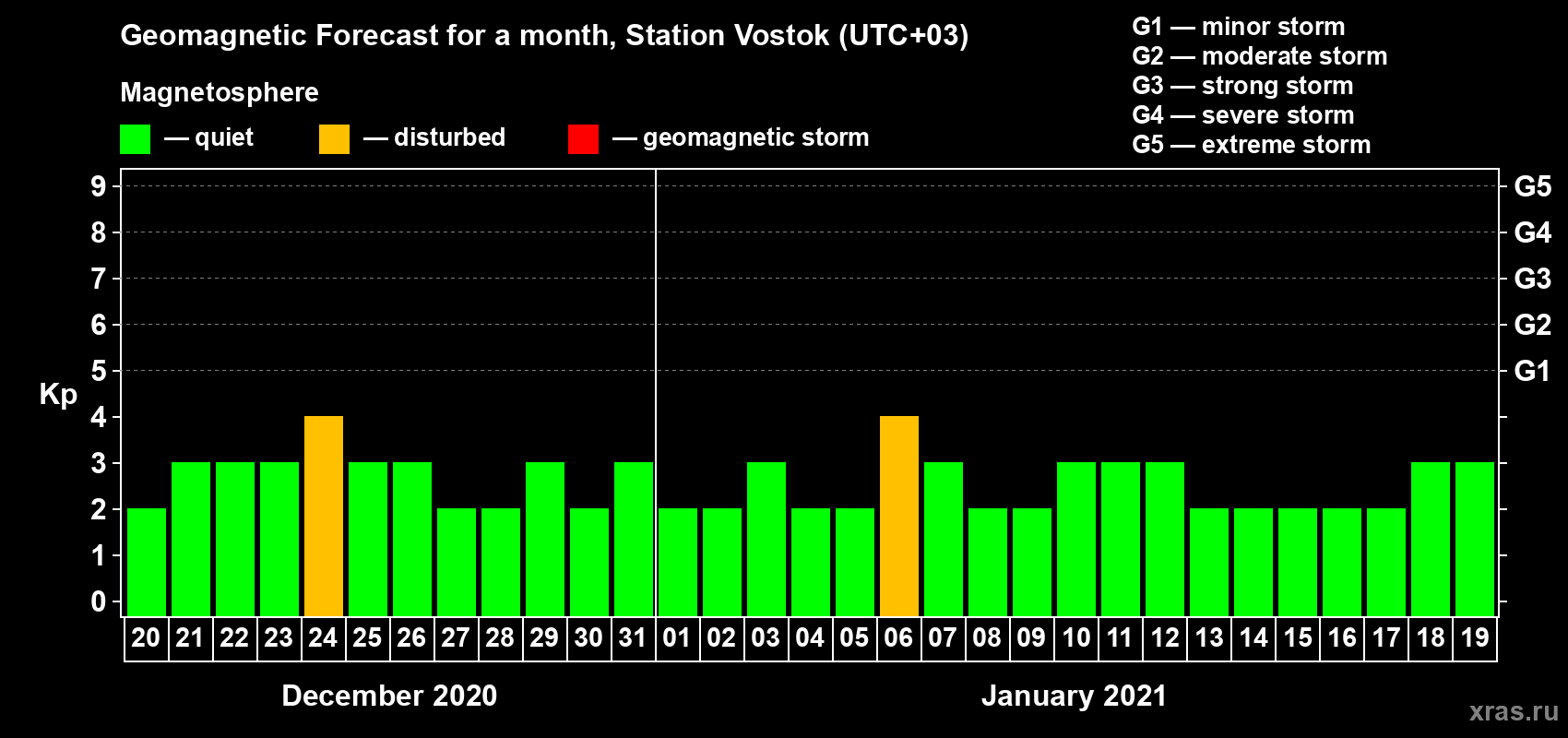 Geomagnetic activity forecast in Station Vostok — Dec 20, 2020