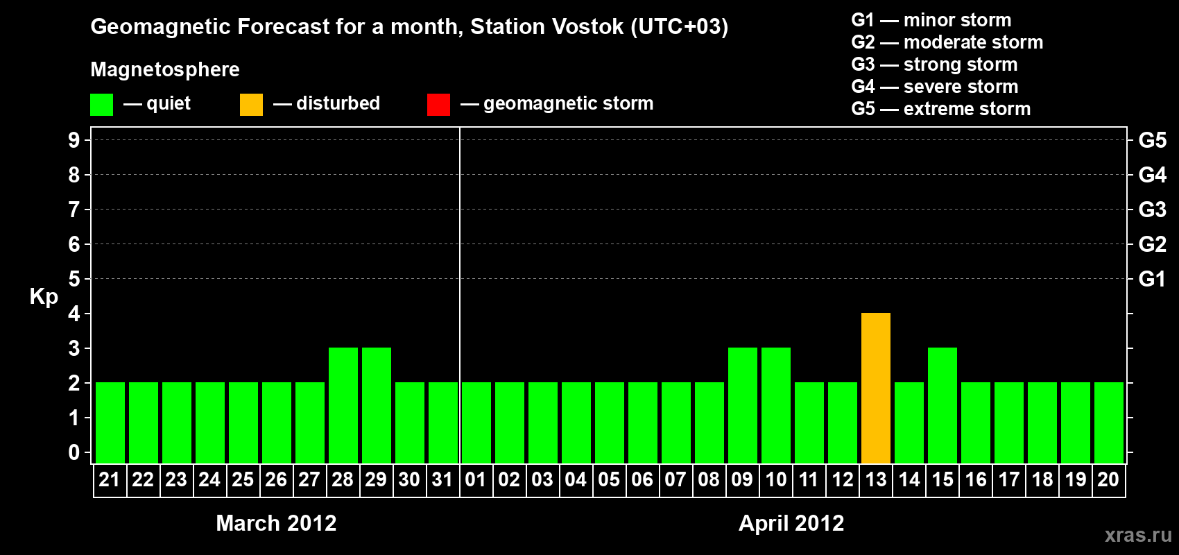 Geomagnetic storm forecast in Station Vostok for Mar 21, 2012