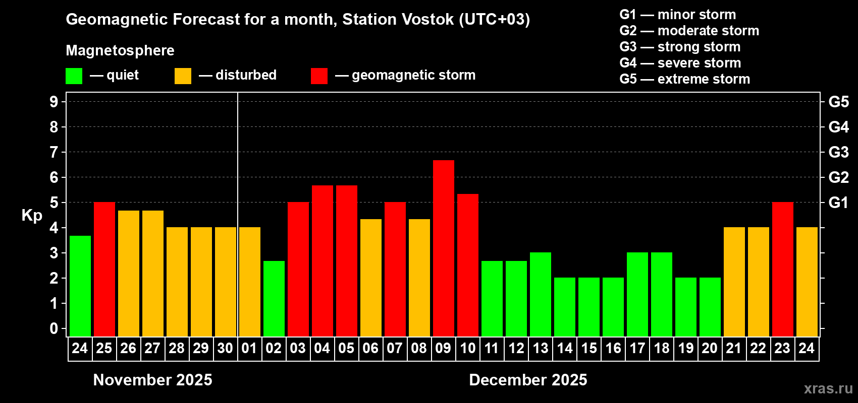Geomagnetic storm forecast in Station Vostok for Nov 24, 2025