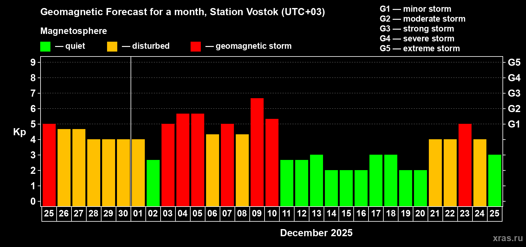 Geomagnetic storm forecast in Station Vostok for Nov 25, 2025