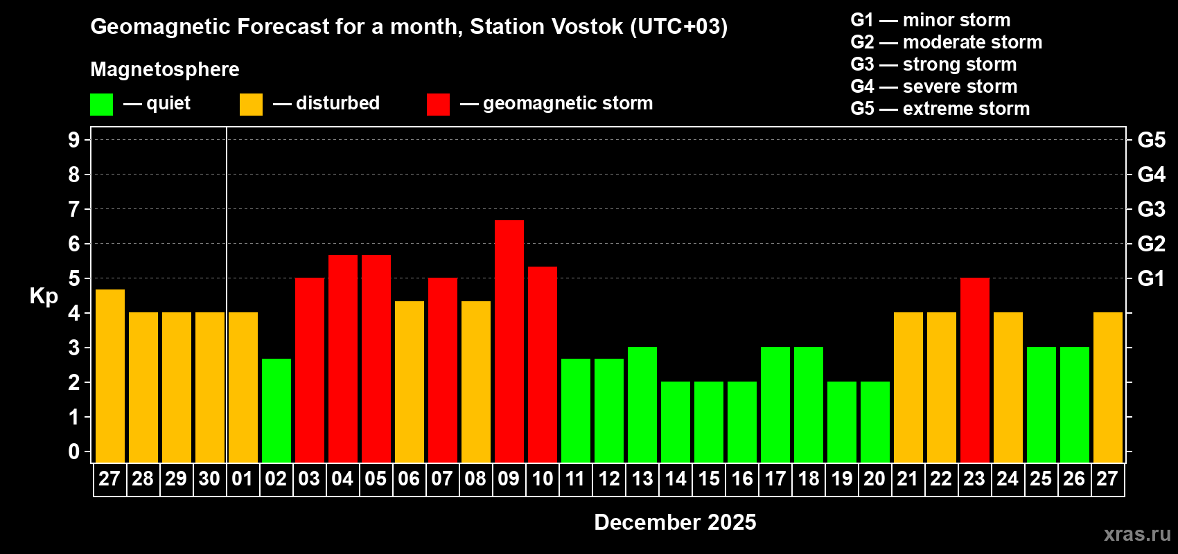 Geomagnetic storm forecast in Station Vostok for Nov 27, 2025