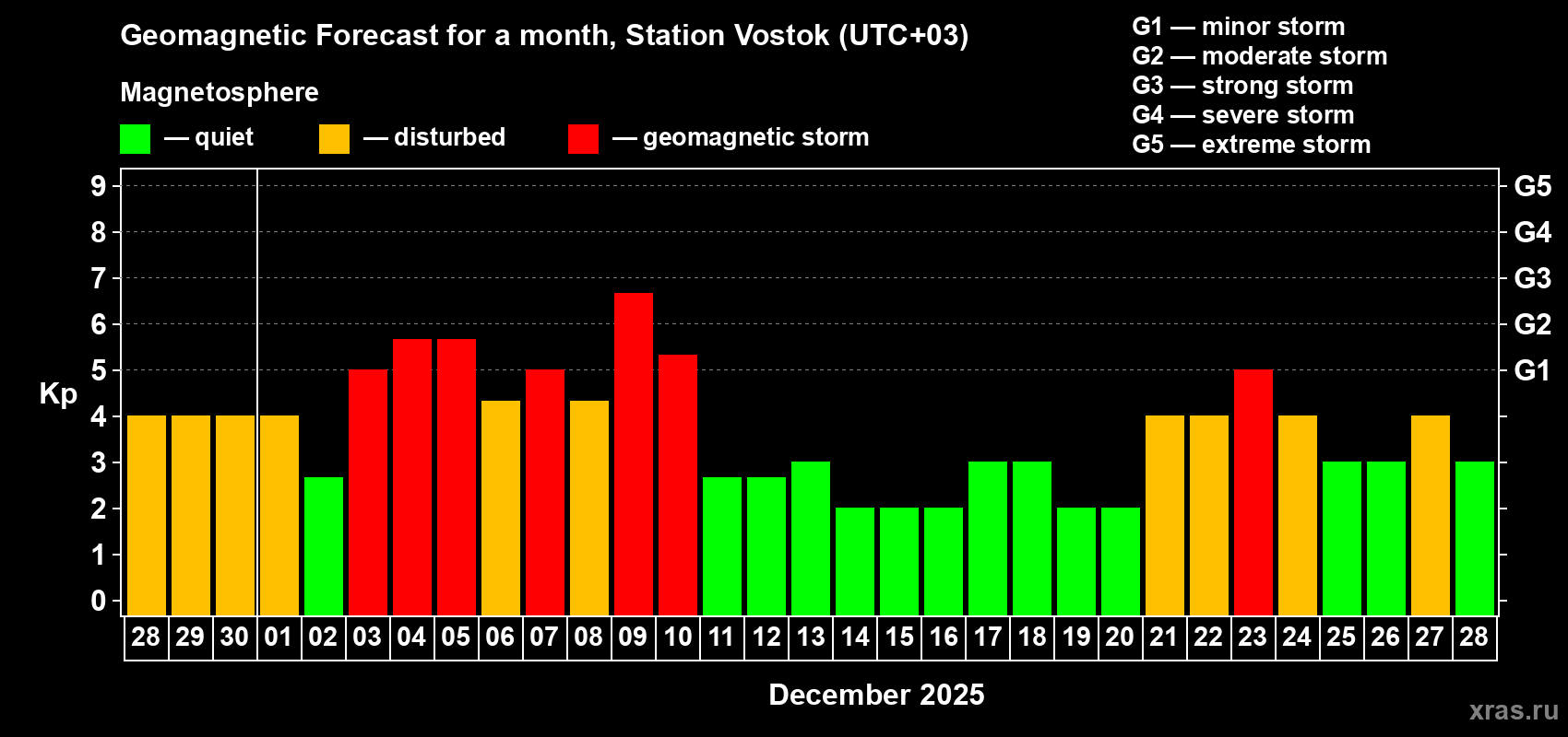 Geomagnetic storm forecast in Station Vostok for Nov 28, 2025