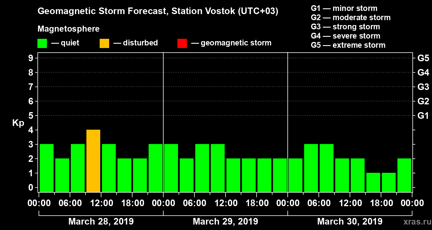 Geomagnetic storm forecast in Station Vostok for Mar 28, 2019