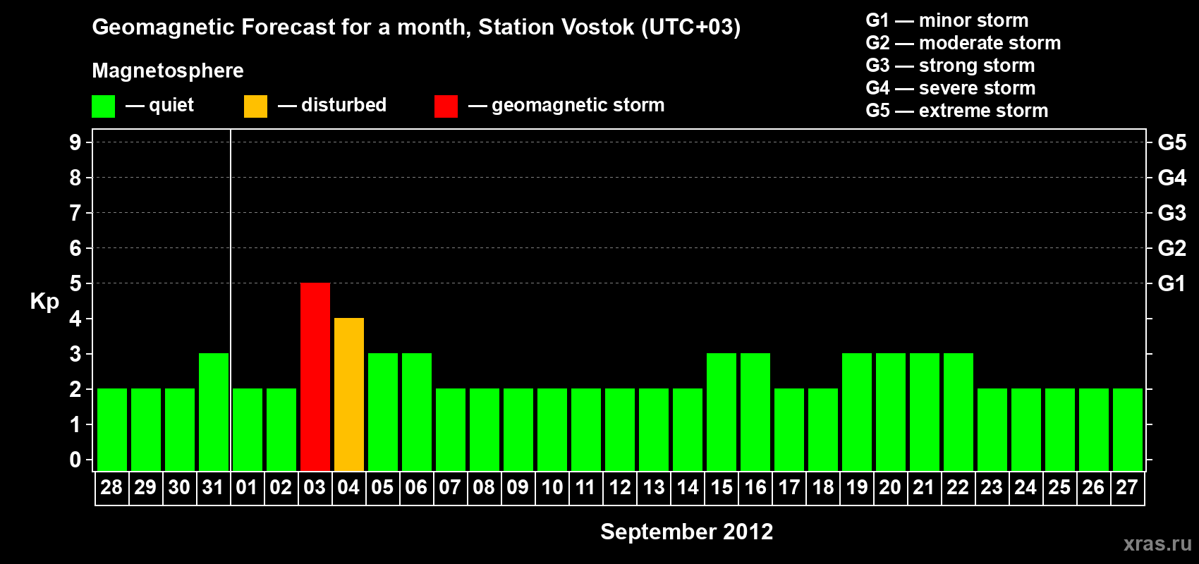 Geomagnetic storm forecast in Station Vostok for Aug 28, 2012