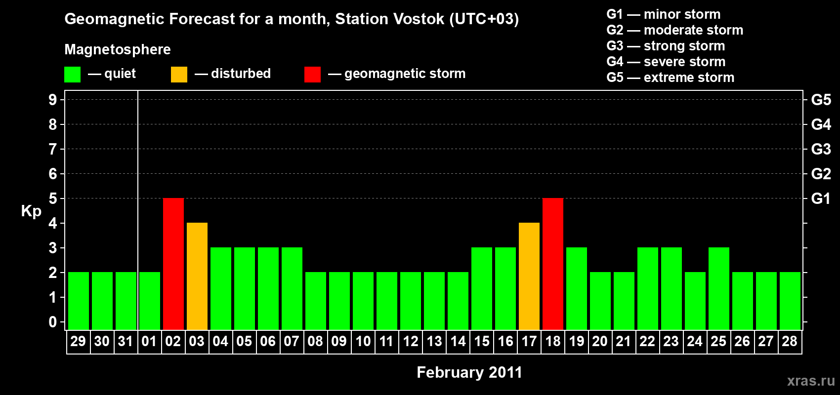 Geomagnetic storm forecast in Station Vostok for Jan 29, 2011
