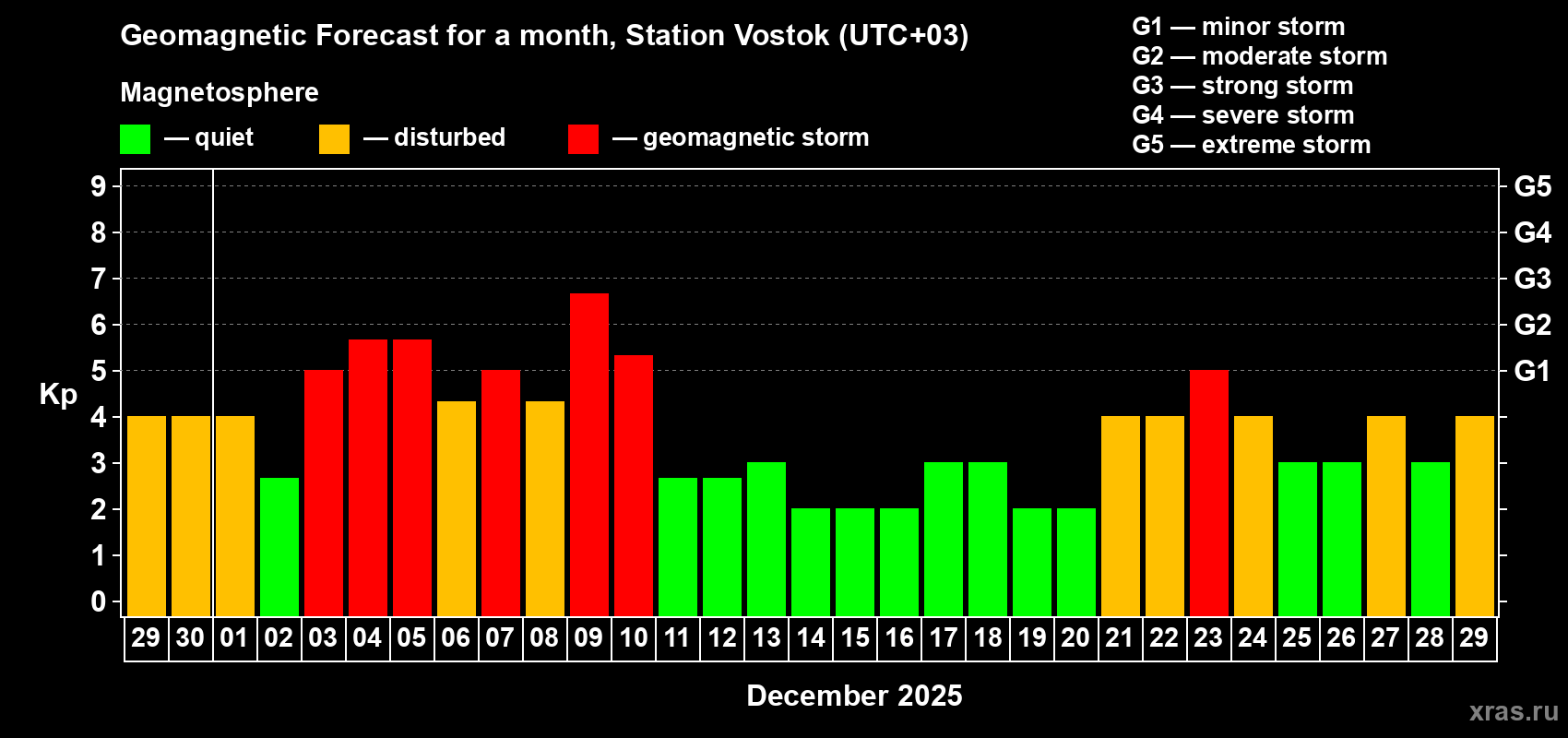 Geomagnetic storm forecast in Station Vostok for Nov 29, 2025