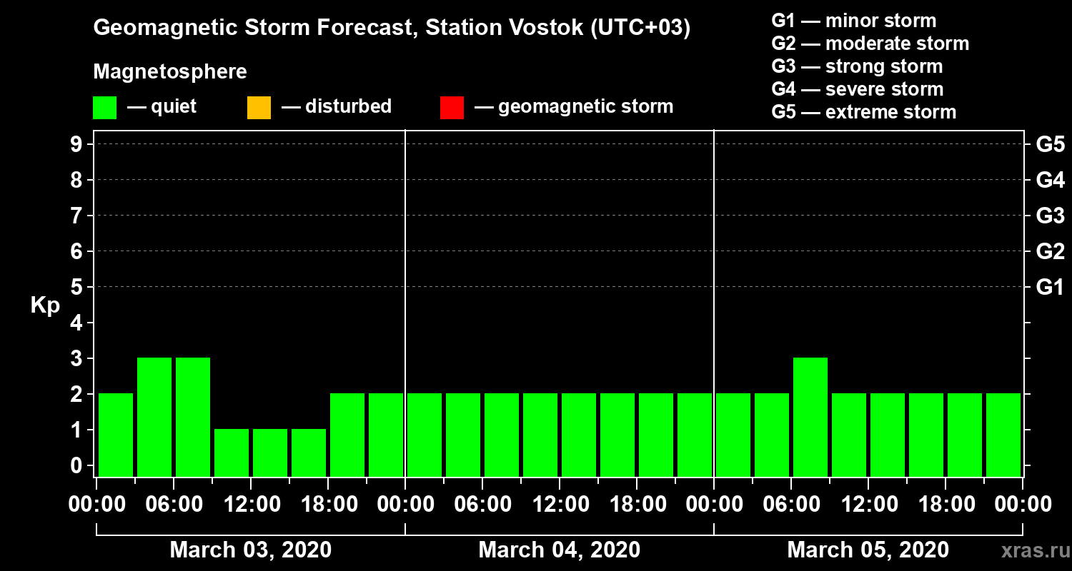 Geomagnetic storm forecast in Station Vostok for Mar 03, 2020