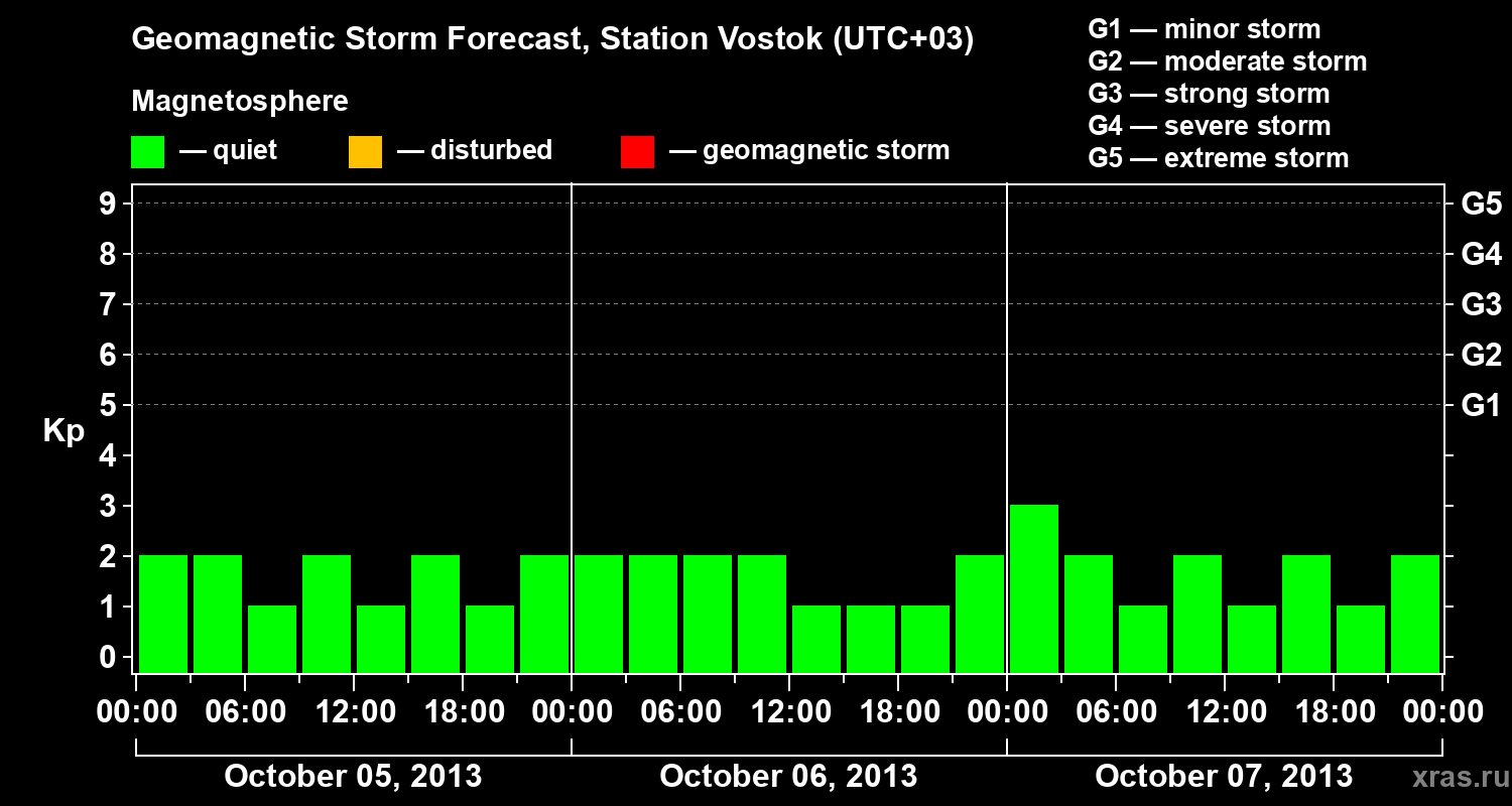 Geomagnetic storm forecast in Station Vostok for Oct 05, 2013