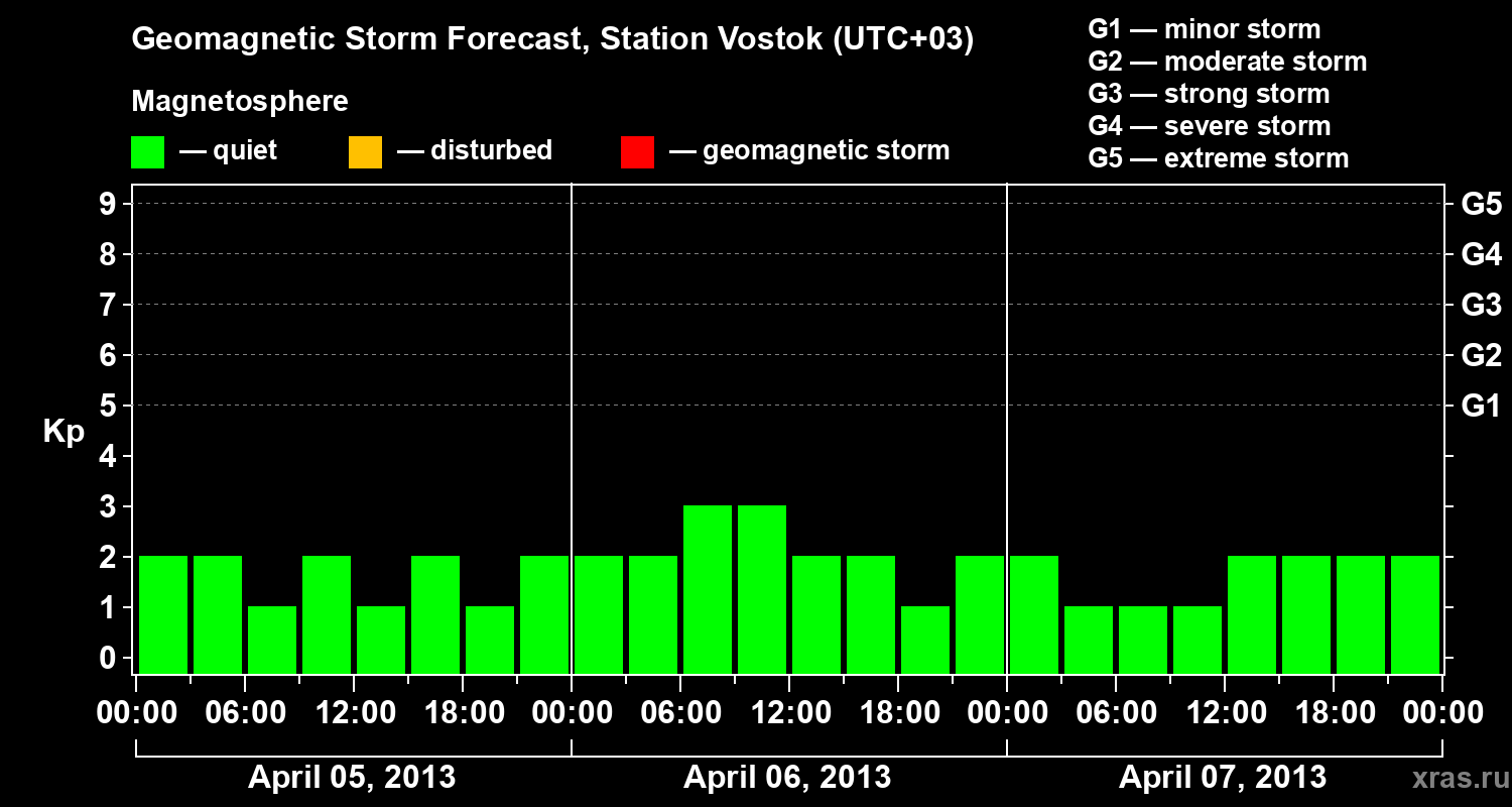 Geomagnetic storm forecast in Station Vostok for Apr 05, 2013