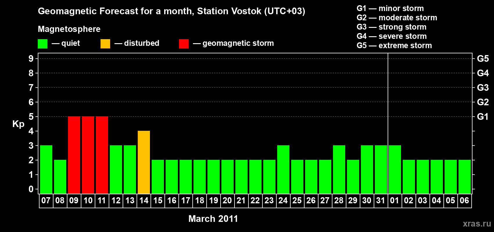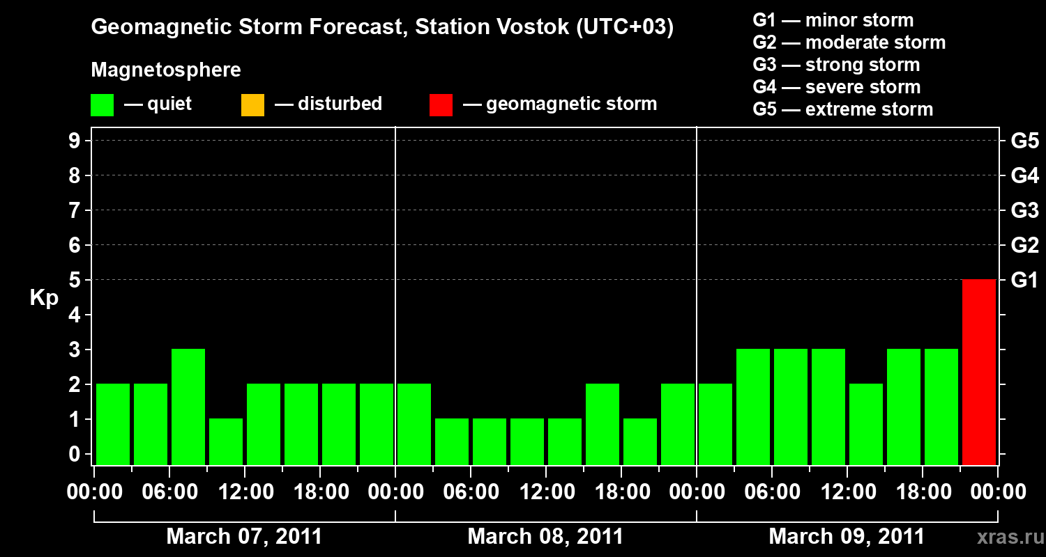 Geomagnetic storm forecast in Station Vostok for Mar 07, 2011
