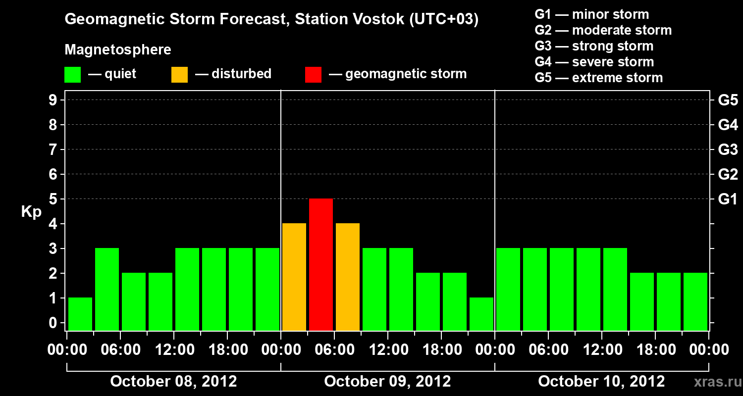 Geomagnetic storm forecast in Station Vostok for Oct 08, 2012