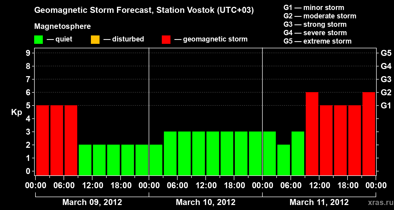 Geomagnetic storm forecast in Station Vostok for Mar 09, 2012