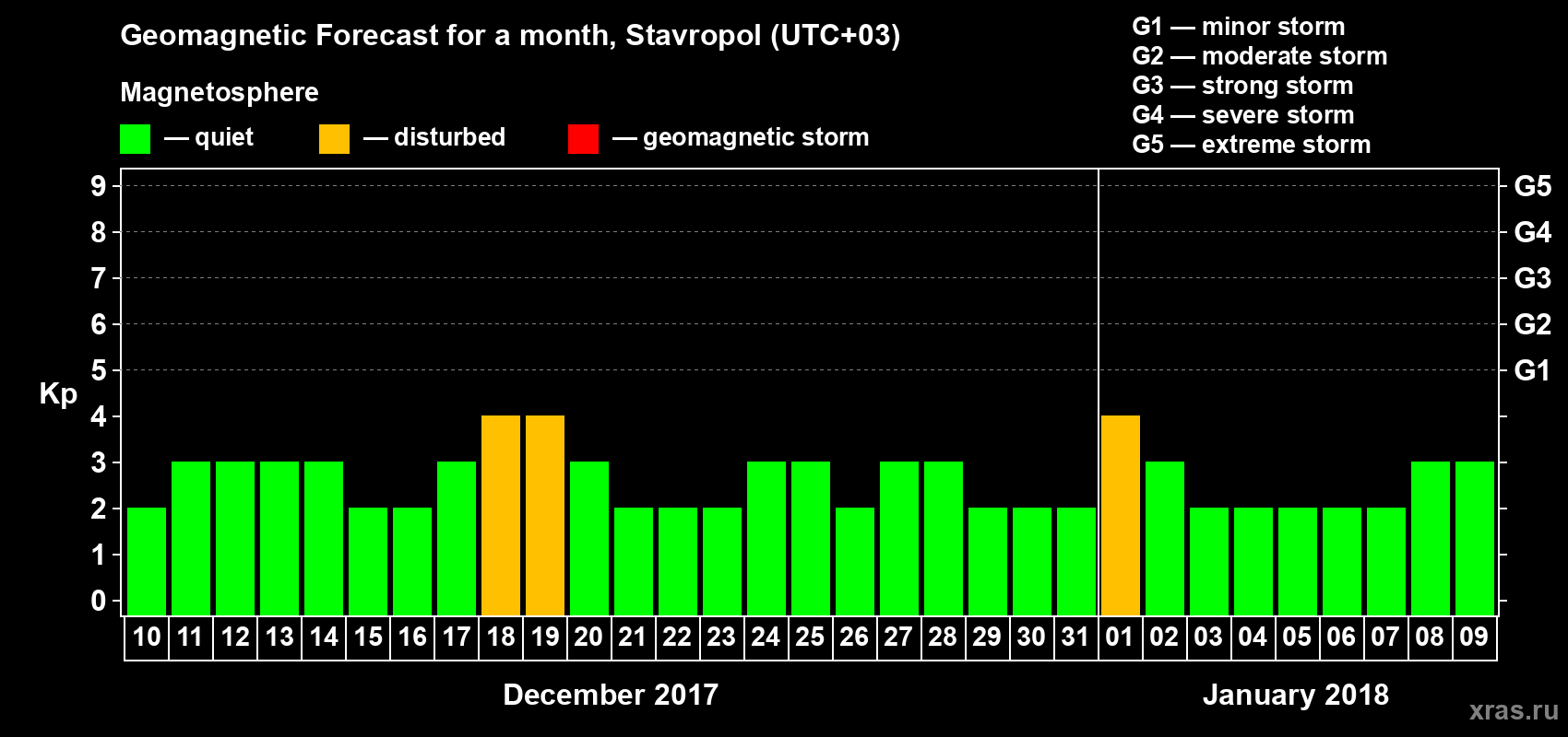Geomagnetic activity forecast in Stavropol — Dec 10, 2017