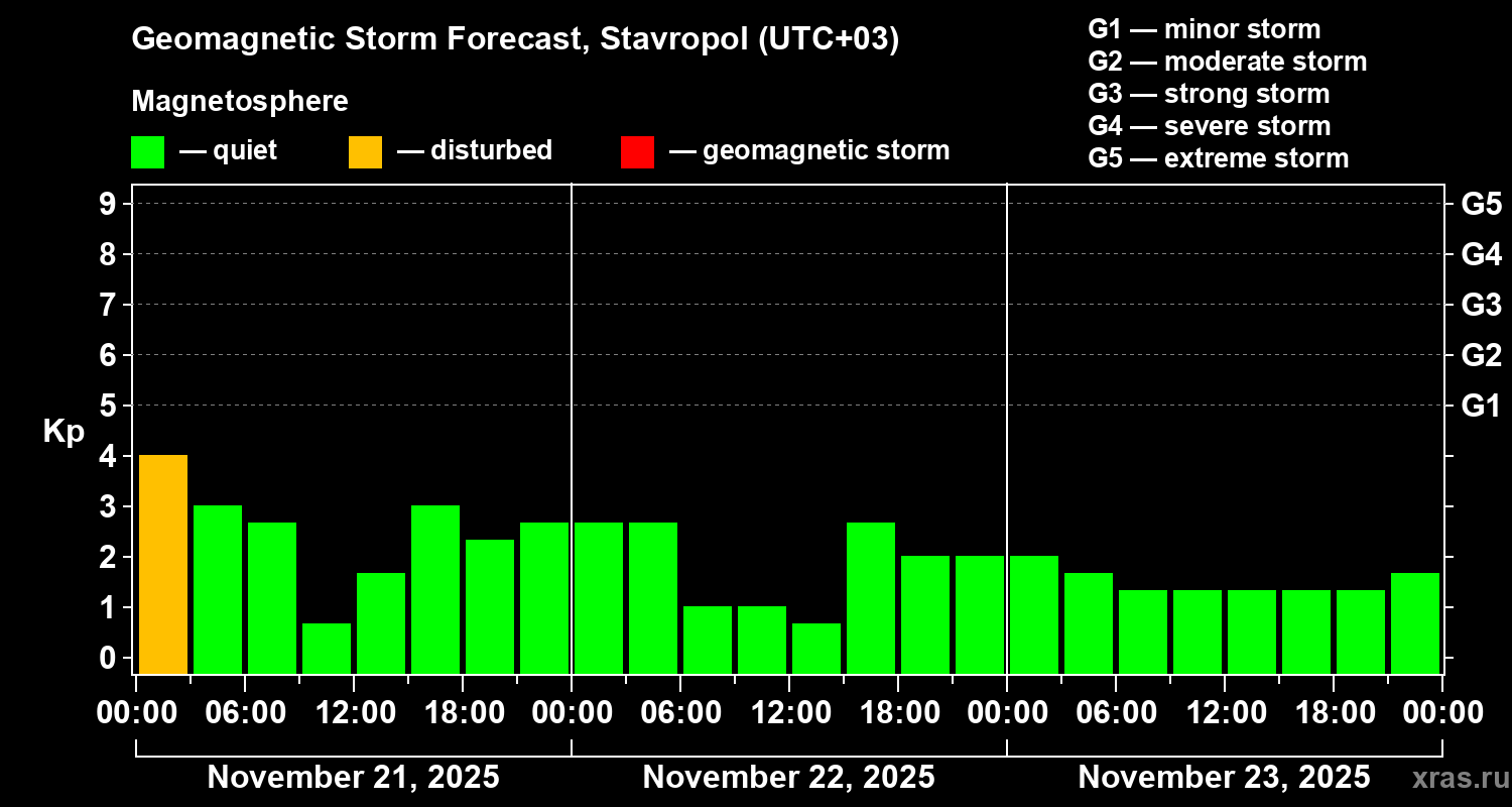 Geomagnetic storm forecast in Stavropol for Nov 21, 2025