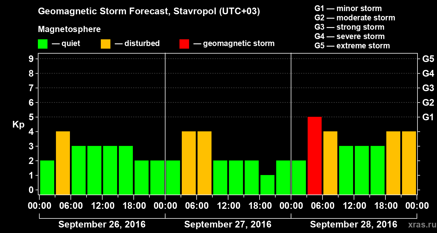 Geomagnetic storm forecast in Stavropol for Sep 26, 2016