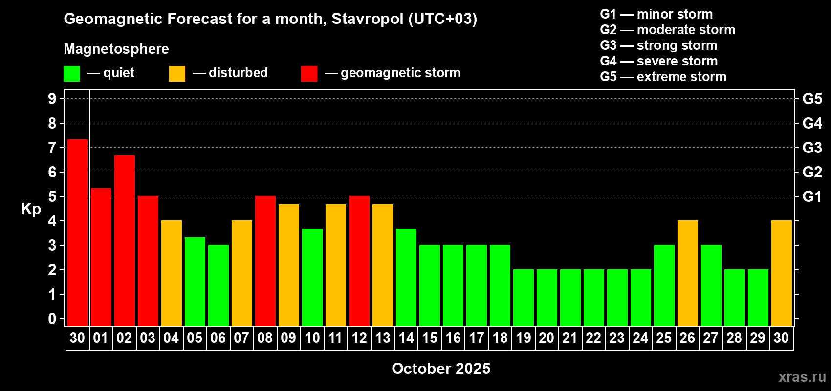 Geomagnetic storm forecast in Stavropol for Sep 30, 2025