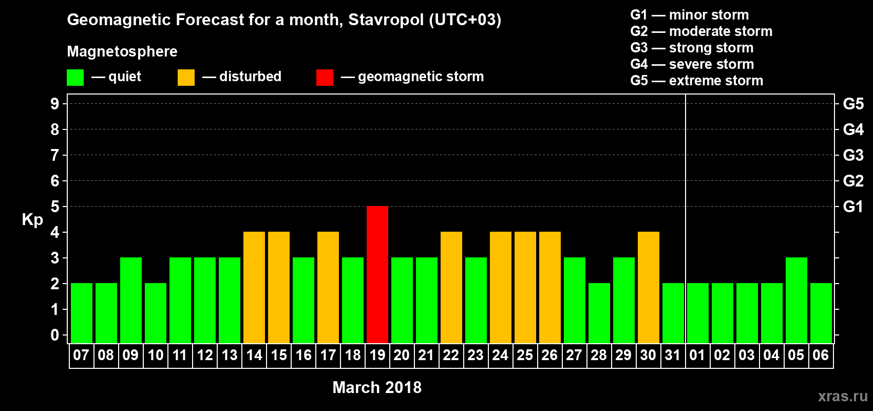 Geomagnetic storm forecast in Stavropol for Mar 07, 2018