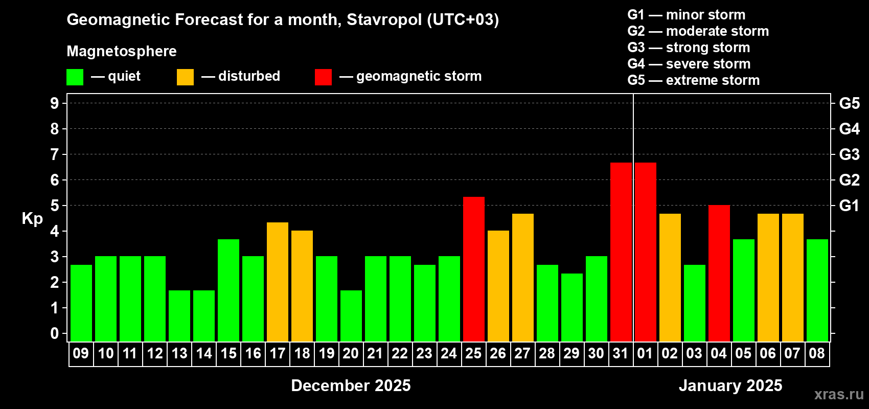 Geomagnetic storm forecast in Stavropol for Dec 09, 2024